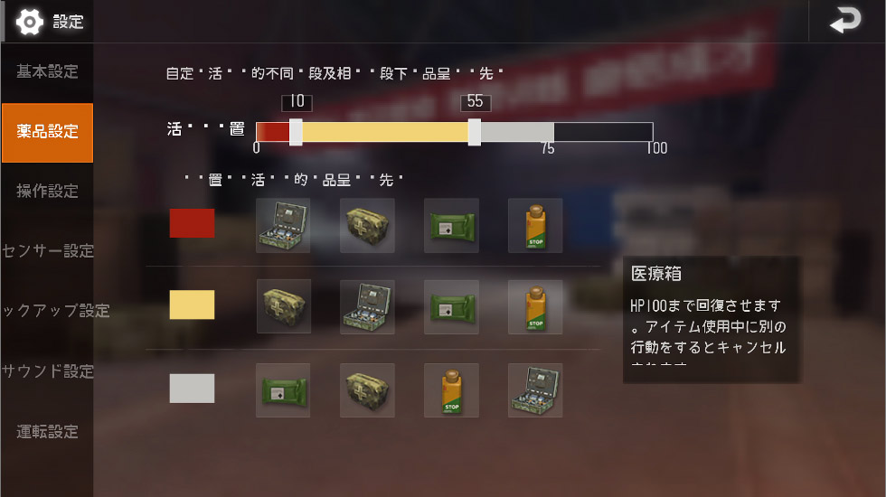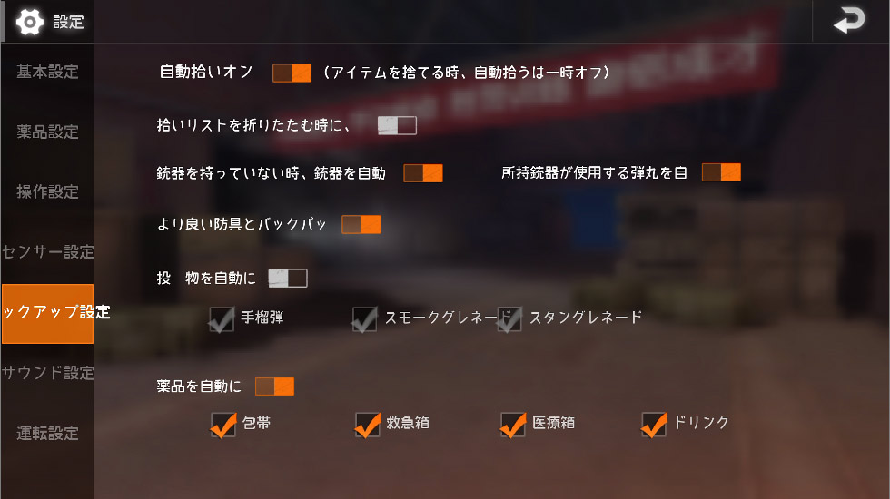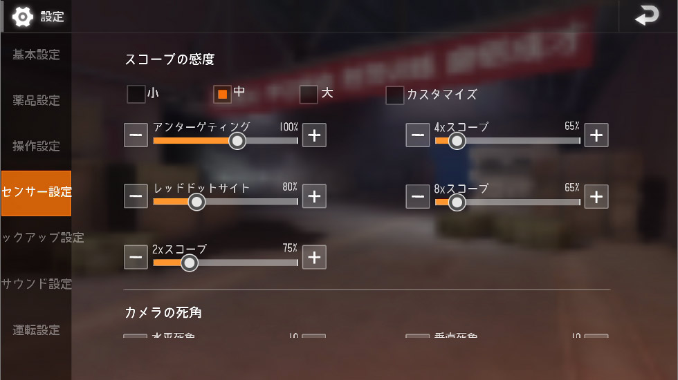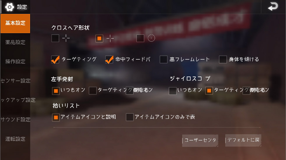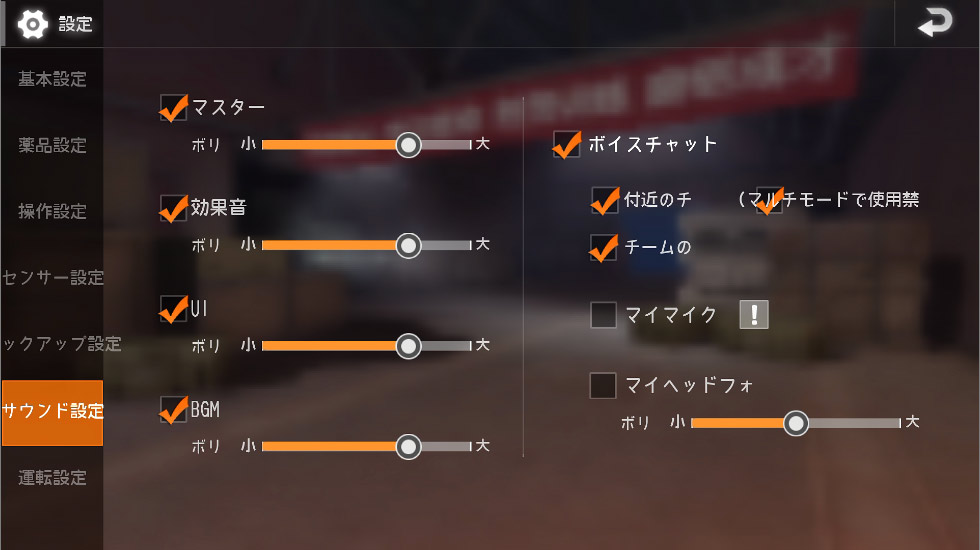 | 効果音 | 銃声、車両音、足音の音量。(相手に聞こえ辛くなるわけではない) |