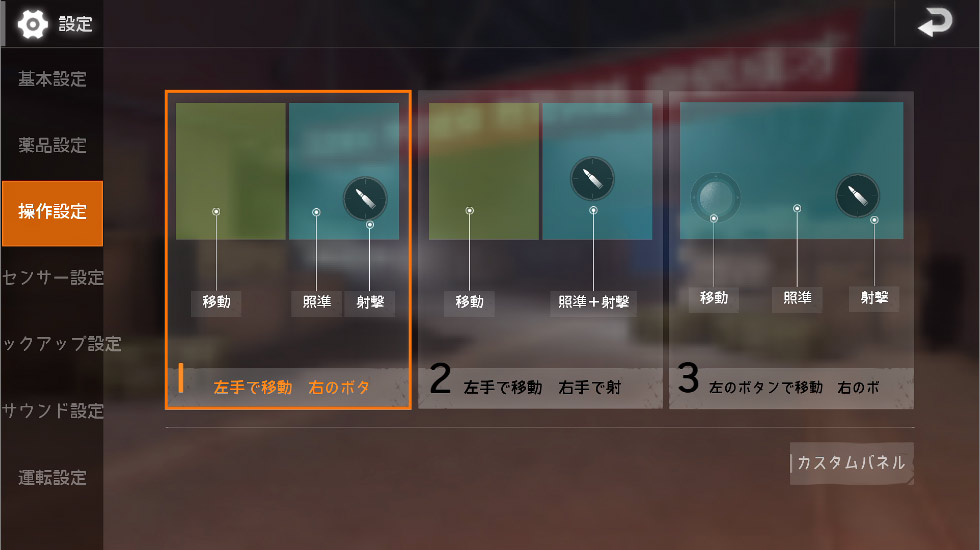 通常時の操作設定。カスタムパネルではそれそれの配置を自由に配置できる。